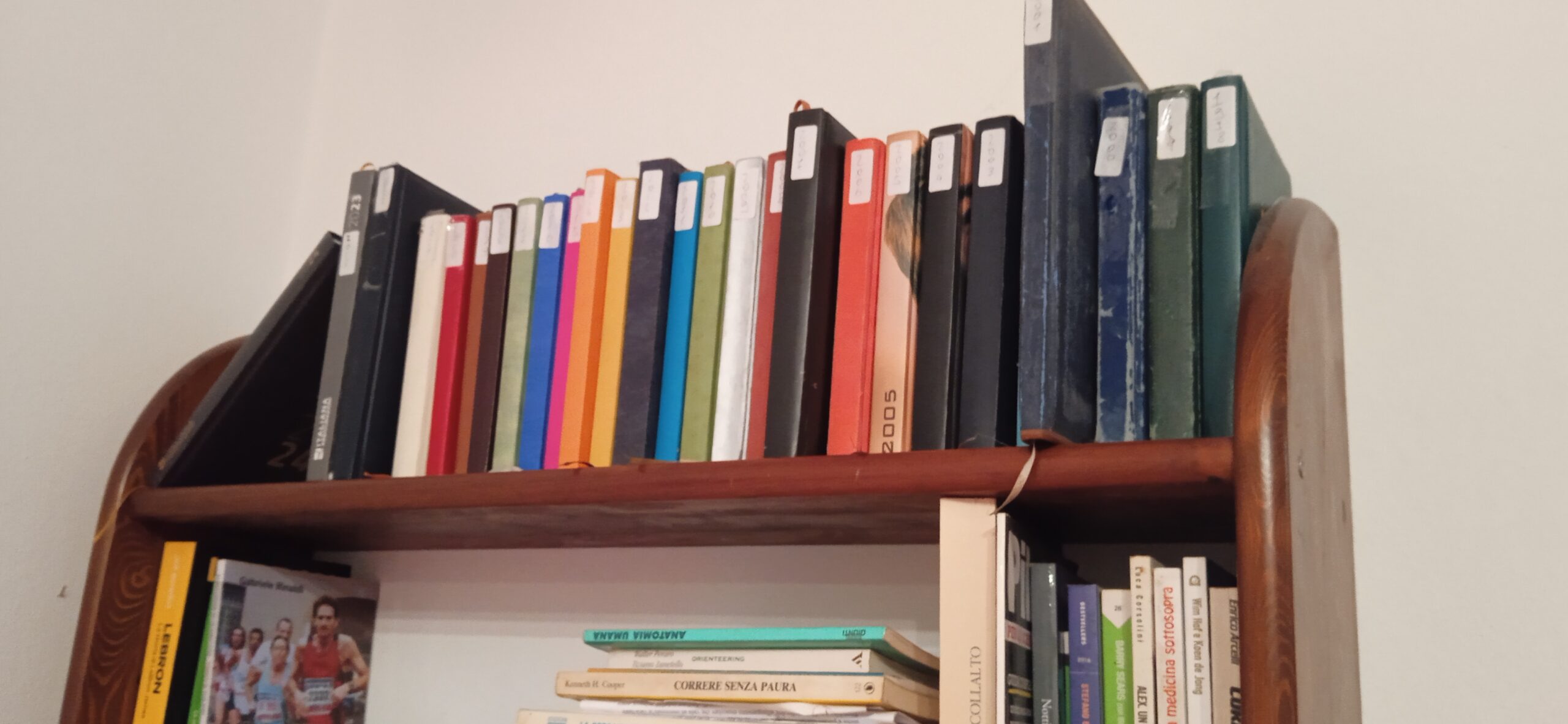 Sono agende, le vecchie agende, dal 1998 raccolgono i miei allenamenti quotidiani: chilometri, tempi, sensazioni, incontri, episodi.